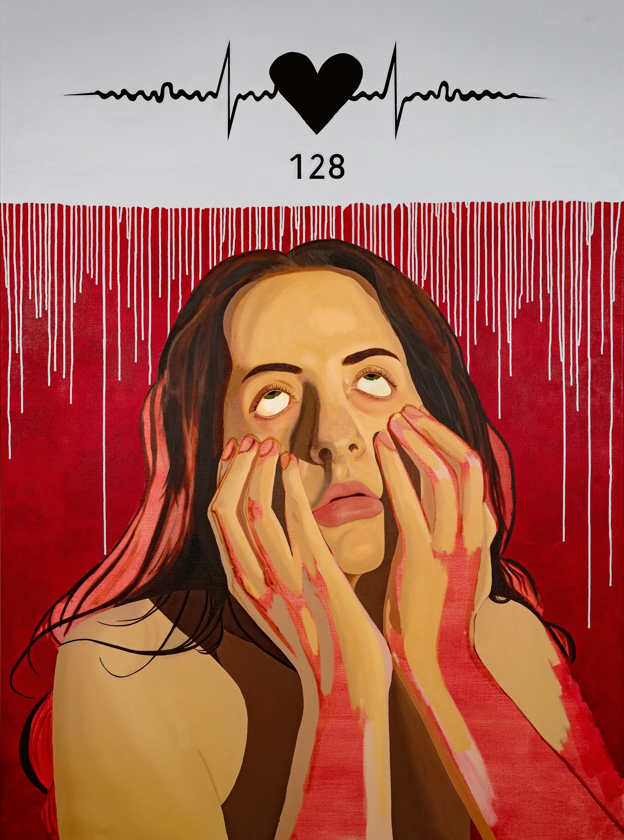 128 bpm, oil on canvas, 6’ x 4.5’, 2024